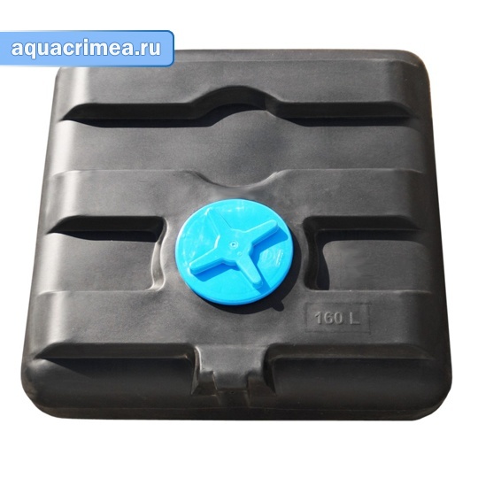 Емкость для душа объемом 160 л. С помощью этого бака легко построить летний душ в любых условиях. Бак для душа черного цвета, поэтому вода в нем быстро нагревается. В нижней стенке бака расположено резьбовое отверстие 1/2 дюйма, позволяющие вкрутить шаровой кран. Вода полностью сливается из бака благодаря конусному дну.