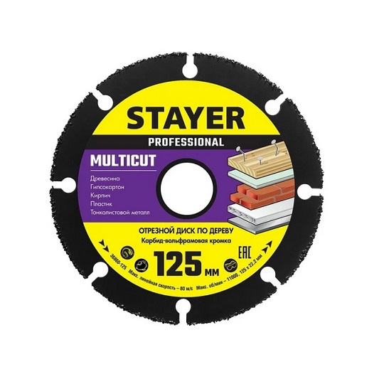 Отрезной диск для STAYER по дереву может быть испоьзован при проведении ремонта и строительных работ.