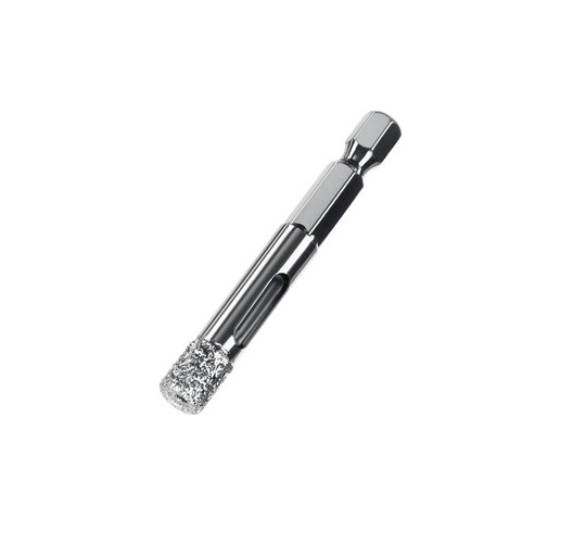 Алмазное сверло, предназначено для сверления отверстий в керамограните, камне, керамике, бетоне, кирпиче, ограниченно в листовом металле, дереве и комбинаций всех этих материалов. Используются с дрелями в режиме безударного сверления. Сверление керамогранита высшего класса твердости. Высокая скорость сверления. Возможность работы без обязательного охлаждения благодаря Вакуумной Спайке алмазов. Увеличенный в несколько раз ресурс по сравнению с обычными гальваническими сверлами. Шестигранный хвостовик для предотвращения проворачивания в сверлильном патроне. Проточка хвостовика 1/4" для использования быстросъемных адаптеров. Рабочая длина 30 мм для плитки любой толщины.
