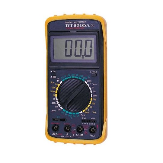 Мультиметр DT9205A предназначен для измерения тока, напряжения, сопротивления, параметров диодов и транзисторов. Прибор многофункционален, портативен, питается от химических источников, удобен при ремонте электрооборудования автомобиля, лабораторных измерений и т.д.