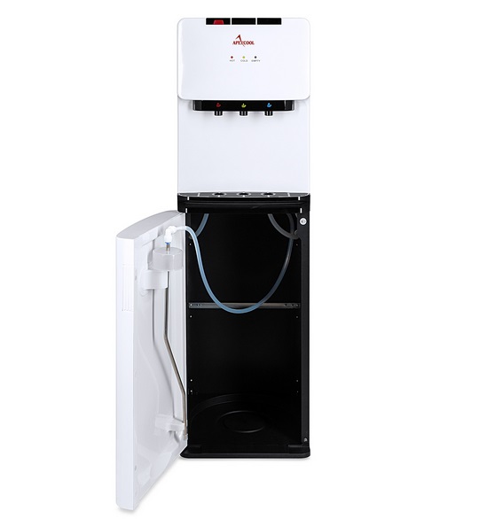 Кулер для воды APEXCOOL HD-1821 LD-N с нижней загрузкой бутыли и электронным охлаждением. Три крана подачи воды: горячей, холодной и комнатной температуры. Защита на кране горячей воды. Отсек для бутыли в нижней части корпуса. Светодиодная индикация режимов нагрева и охлаждения воды, а также отсутствия воды в бутыли. Передняя панель белого цвета, с черными акцентными деталями. Остальная часть корпуса черная. Тип кранов подачи воды – «клавиши».