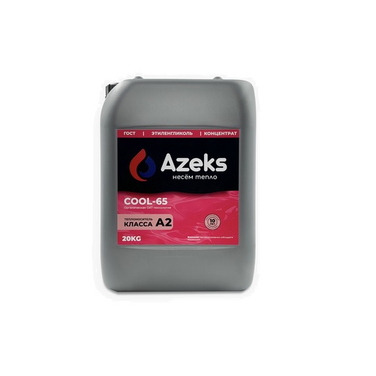 Теплоноситель AZEKS COOL-65 — это концентрированный этиленгликолевый раствор класса A2 с органической технологией OAT (Organic Acid Technology), разработанный для экстремально низких температур (до -65°C). Продукт соответствует ГОСТ 3354-2015 и предназначен для надежной защиты закрытых систем отопления и охлаждения в условиях Крайнего Севера и умеренного климата.