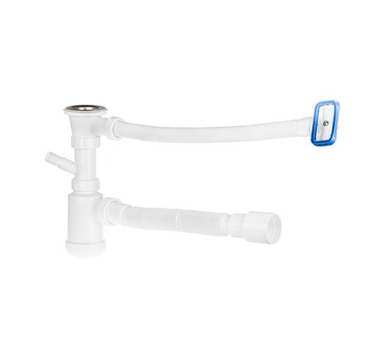 Сифон с универсальной гофрированной трубой 40/50 для кухонной мойки, с отводом для стиральной машины и без отвода
