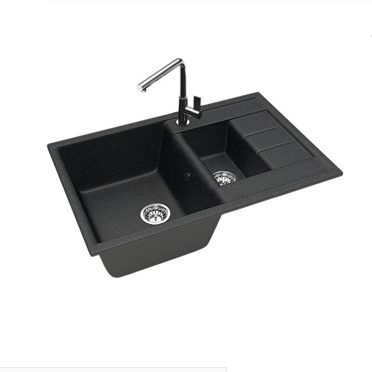 Мойка REDO кухонная кварцевая матовая 755*500*218 (черный) REDO