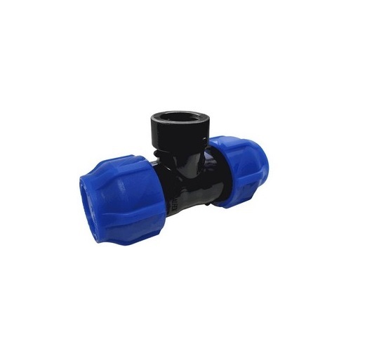 Компрессионный переходной тройник VALFEX ПНД, с внутренней резьбой, 50-1"-50 выполнен из полипропилена и применяется для соединения полиэтиленовых труб кольцевого сечения по ГОСТ 18599 и/или ГОСТ 32415-2013.