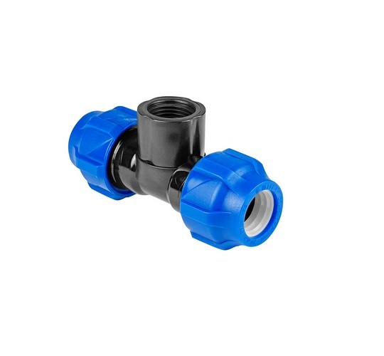 Тройник Valfex с внутренней резьбой 63x1/2"x63 для ПНД труб компрессионный применяются для соединения полиэтиленовых труб.
